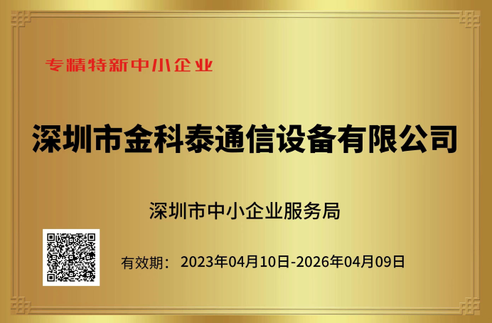 近日,深圳市中小企业服务局发布了《关于2022年深圳市专精特新中小企业名单的公示》。经过多轮专业评审,深圳市1号娱乐通信设备有限公司凭借在通信领域的技术研发实力、精准市场布局以及特色产品应用和持续性创新能力,被正式认定为“专精特新”中小企业。